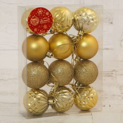 Ёлочные игрушки «Олимпия грани», шары новогодние, d=5 см, 12 шт., золотистый. Новогодние шары «Олимпия грани» — это комплект из 12 золотистых украшений диаметром 5 см, выполненных в стиле классики, ар-деко и новогоднего барокко. Их лаконичный дизайн и насыщенный цвет создают ощущение праздника без лишней вычурности. Эти игрушки станут надежной основой для елочного декора или ярким акцентом в уже собранной композиции. <b> Особенности</b> <ul> <li> Диаметр каждого элемента — 5 см, что делает их компактными, но заметными на елке.</li> <li> Цвет — ровный золотистый, без узоров, подчеркивающий строгость и элегантность.</li> <li> Материал — прочный пластик, устойчивый к повреждениям и безопасный для детей.</li> <li> Стиль — сочетание классики, ар-деко и новогоднего барокко, подходящее под разные интерьеры.</li> <li> Форма — шар, универсальный элемент новогоднего декора, понятный и привычный с детства.</li> </ul> <b> Когда каждая деталь важна</b> Эти шары идеально подходят для тех, кто ценит сдержанную роскошь и порядок в оформлении праздника. Благодаря компактному размеру и однотонному покрытию их легко комбинировать, создавая сложные композиции или равномерно распределяя по елке. Украшение дома становится не просто процессом — оно наполняется смыслом, теплом и предвкушением чуда, которое начинается с малого.
