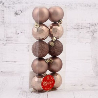 Ёлочные игрушки «Диско ассорти», шары новогодние, набор d=5 см, 10 шт., коричневый. Новогодние шары «Диско» — это яркий акцент для тех, кто украшает елку с настроением и стилем. Коричневый цвет и матовая поверхность добавляют оформлению тепла и уюта, а 10 пластиковых игрушек диаметром 5 см позволяют создать праздничный образ без лишней пышности. Набор легко вписывается в датский стиль, где важны лаконичность и естественность. <b> Почему выбирают</b> <ul> <li> Коричневый оттенок создает ощущение зимнего уюта и сочетается с другими новогодними тонами.</li> <li> Диаметр 5 см делает шары универсальными — подходит для маленькой настольной елки и большой напольной.</li> <li> Однотонный дизайн работает как база для экспериментов с другими украшениями или как самостоятельный вариант оформления.</li> </ul> <b> Как использовать в интерьере</b> Эти шары станут основой праздничного декора или яркими акцентами в уже готовом дизайне. Их можно расставить равномерно по кроне для целостного образа или собрать в локальные композиции — чтобы выделить верхушку или нижние ветви. Коричневые тона добавляют интерьеру тепла и создают ощущение приближающегося праздника без лишнего блеска и пафоса.