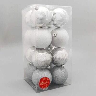 Ёлочные игрушки «Зимний шик», шары новогодние, d=8 см, набор 16 шт., серебро. Серебристые новогодние шары «Зимний шик» — это стильное и сдержанное украшение для праздничного интерьера. Набор из 16 пластиковых игрушек диаметром 8 см добавит елке ощущение света и зимней свежести. Они подходят под скандинавский, датский и ар-деко стиль, легко комбинируются между собой и создают эффект целостного, но лаконичного оформления. <b> Что внутри</b> <ul> <li> 16 однотонных новогодних шаров серебристого цвета.</li> <li> Диаметр каждой игрушки — 8 см.</li> <li> Материал — прочный пластик, устойчивый к повреждениям.</li> <li> Стиль — сочетается со скандинавским дизайном, ар-деко и датским минимализмом.</li> </ul> <b> Больше стиля, меньше деталей</b> Эти шары словно отблеск зимнего света на снегу — чистые, немного холодные, но очень выразительные. Такой набор создает праздничную атмосферу без лишнего блеска и перегруза. Подходит для тех, кто предпочитает отмечать Новый год с эстетикой, а не с количеством.