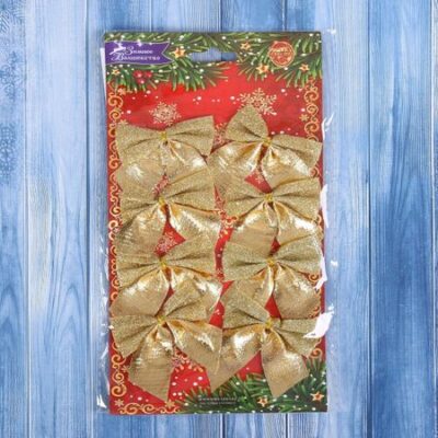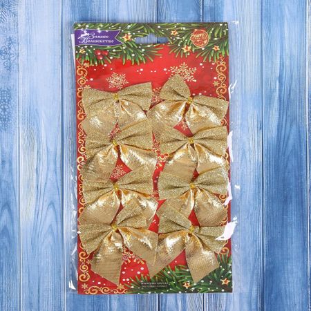 Ёлочные игрушки 8 шт. «Зимнее волшебство. Бантик с блеском» пластик, 4.5×5.5 см, золото. Бантики на новогодней елке, что может быть милее? Они подарят чудесное настроение в канун праздника. А мерцающий лоск создаст в доме торжественную атмосферу. Золотые украшения отлично дополнят стильный интерьер. Ёлочные игрушки 8 шт. «Зимнее волшебство. Бантик с блеском» пластик, 4.5×5.5 см, золото преобразят новогоднюю ель, также ими можно украсить и любые другие предметы. Сделайте праздничное убранство сияющим!