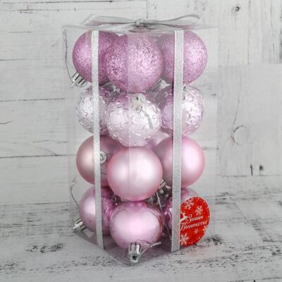 Ёлочные игрушки «Звездная ночь», шары новогодние, набор 16 шт., d=5 см, розовый. Новогодние шары розового цвета, 5 см в диаметре, 16 штук в наборе — это мягкий и уютный акцент на елке в стиле «шебби-шик». Их пастельный оттенок создает ощущение нежности и праздника без излишней яркости. Эти игрушки станут основой лаконичного декора или дополнением к уже существующему оформлению. <b> Преимущества</b> <ul> <li> Розовый цвет задает теплую атмосферу и подходит для семейного праздника.</li> <li> Диаметр 5 см — оптимальный размер для равномерного украшения елки без перегрузки.</li> <li> Пластиковые шары прочные, не боятся повреждений и легко чистятся.</li> <li> Однотонный дизайн сочетается с разными стилями: от классики до современного минимализма.</li> <li> В наборе — 16 штук, достаточно для полного базового оформления средней елки.</li> <li> Стиль «шебби-шик» подчеркивает простоту и уют, без лишних деталей.</li> <li> Универсальный выбор для тех, кто предпочитает мягкие тона и зимнюю романтику.</li> </ul> <b> Создайте свою «звездную ночь» дома</b> Эти шары превращают елку в пространство уюта и тепла. Они не требуют сложных решений, но задают правильное настроение. Подвесьте их вместе с белыми и серебристыми игрушками, добавьте теплые гирлянды — и ваш дом наполнится атмосферой ожидания праздника. Праздник начинается с малого — начните с розового света в окне.