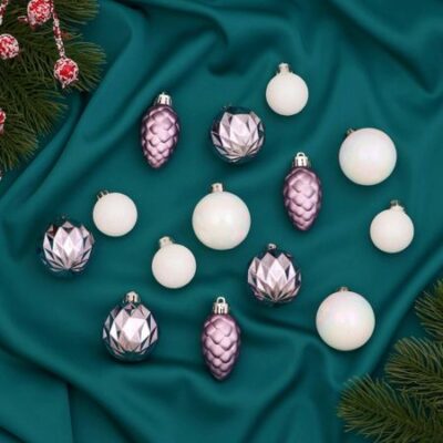 Главная » Товары для детей Ёлочные игрушки пластик, набор 21 шт , Просмотров 5 Ёлочные игрушки пластик, набор 21 шт ,"Изабель" шишки, d-3 и 4,5 см, белый сиреневый. Зимнее волшебство