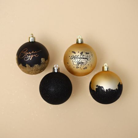 Главная » Товары для детей Ёлочные игрушки, шары новогодние Просмотров 3 Ёлочные игрушки, шары новогодние «Новогодних чудес», украшение на Новый год, пластик, d=6, 4 шт., черные, золотые. Сима-ленд