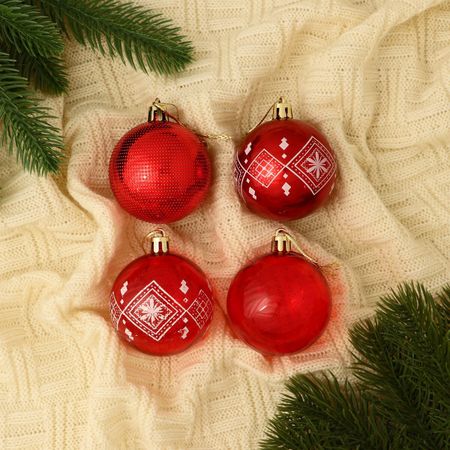 Главная » Товары для детей Ёлочные игрушки, шары пластик d-5,5 см, 4 шт Просмотров 2 Ёлочные игрушки, шары пластик d-5,5 см, 4 шт "Новогодние забавы" ромб цветок, красный. Зимнее волшебство