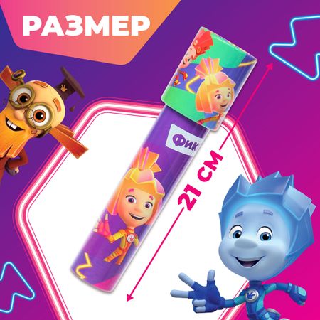 Калейдоскоп, Фиксики. <em> Создавай волшебные узоры с любимыми героями!</em> Калейдоскоп «Фиксики» — это яркая игрушка для детей от 3 лет. Вращайте трубку — и перед глазами будут появляться красочные узоры. Простое управление и яркие образы увлекут ребенка надолго. <b> Особенности</b> <ul> <li> Внутри калейдоскопа — разноцветные элементы, которые складываются в неповторимые узоры.</li> <li> Компактный размер — 21 см, удобно держать в маленьких руках, брать с собой на прогулку или в поездку. Легкий и прочный корпус выдержит активные игры.</li> <li> Не требует батареек, нет мелких деталей. Достаточно поворачивать трубку, чтобы узоры менялись.</li> </ul> <b> Развиваемся вместе с Фиксиками</b> Калейдоскоп развивает фантазию, цветовосприятие и концентрацию. Ребенок тренирует внимание и придумывает сюжеты. Отличный подарок для мальчиков и девочек, которые любят мультфильм. Подарите ребенку радость открытий — пусть каждый поворот создает сказку!