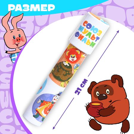 Калейдоскоп, Союзмультфильм. <em> Создавай волшебные узоры с любимыми героями!</em> Калейдоскоп «Союзмультфильм» — это яркая игрушка для детей от 3 лет. Вращайте трубку — и перед глазами будут появляться красочные узоры. Простое управление и яркие образы увлекут ребенка надолго. <b> Особенности</b> <ul> <li> Внутри калейдоскопа — разноцветные элементы, которые складываются в неповторимые узоры.</li> <li> Компактный размер — 21 см, удобно держать в маленьких руках, брать с собой на прогулку или в поездку. Легкий и прочный корпус выдержит активные игры.</li> <li> Не требует батареек, нет мелких деталей. Достаточно поворачивать трубку, чтобы узоры менялись.</li> </ul> <b> Развиваемся с героями Союзмультфильм</b> Калейдоскоп развивает фантазию, цветовосприятие и концентрацию. Ребенок тренирует внимание и придумывает сюжеты. Отличный подарок для мальчиков и девочек, которые любят добрые мультфильмы. Подарите ребенку радость открытий — пусть каждый поворот создает сказку!