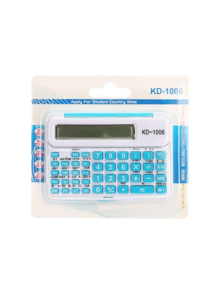 Калькулятор инженерный KENKO, 10-разрядный, 1006 корпус голубой. Умный калькулятор с расширенными функциями – идеальный помощник для студентов и профессионалов, которым важны точность и надежность. Прибор доступен в элегантных цветах на выбор – белом и голубом – гармонично впишется в любой рабочий процесс и станет верным спутником при решении сложных задач. Подходящий «Европодвес» создает удобство для хранения или переноски. <b> Характеристики</b> <ul> <li> Научный прибор для профессиональных расчетов.</li> <li> Десятиразрядный дисплей позволяет работать с большими числами без труда.</li> <li> Легкий корпус облегчает транспортировку между уроками или встречами.</li> <li> Штрихкод на единице товара гарантирует подлинность вашего приобретения.</li> </ul> <b> Детали для продуктивных решений</b> С этим научным девайсом сложные уравнения и инженерные расчеты становятся доступны как никогда ранее. Просто возьмите в руки этот маленький инструмент, и он преобразит ваш подход к числам, увеличивая вашу продуктивность и уверенность в каждом решении.