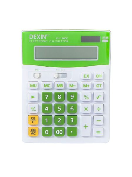 Калькулятор настольный 12-разрядный КК-1200C, белый/зеленый. Удобный бело-зеленый настольный калькулятор с 12-разрядным дисплеем станет идеальным помощником в ваших финансовых расчетах. Этот стильный гаджет прекрасно впишется как в офис, так и в домашний кабинет, обеспечивая точность и надежность вычислений. <b> Особенности</b> <ul> <li> 12-разрядный дисплей позволяет с легкостью выполнять сложные расчеты.</li> <li> Работает на пальчиковых батарейках AA, LR6, что делает его мобильным и независимым от электросети.</li> <li> Возможность общего суммирования (GT) упрощает ведение учета и расчеты.</li> <li> Компактный и легкий корпус удобно размещается на каждом рабочем месте.</li> <li> Прекрасный вариант для офиса и дома благодаря универсальному бело-зеленому дизайну.</li> </ul> <b> Незаменимый помощник</b> Этот настольный калькулятор станет вашим верным помощником в мире цифр и расчетов. Прощайте, усталость и ошибки! С ним ваша бухгалтерия всегда будет в полном порядке. Украсьте свой рабочий стол практичным и современным устройством, которое готово к работе, где бы вы ни находились!