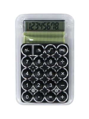 Калькулятор настольный 8-разрядный, KS-005, прозрачный корпус, черные кнопки. Карманный калькулятор с 8-разрядным дисплеем в прозрачном корпусе с черными кнопками. Компактное и функциональное решение для любой деловой среды. Встроенная функция общего суммирования (GT) позволяет ускорить вычисления и повысить производительность. Работает от таблеточных батареек, обеспечивая простоту замены и стабильную работу. Европодвес присутствует, что добавляет удобства в хранении. Преимущества <ul> <li> Удобен на рабочем столе или в кармане, всегда под рукой для быстрого доступа.</li> <li> Эргономичный дизайн обеспечивает комфорт в использовании на протяжении всего дня.</li> <li> Изготовлен из качественных материалов, гарантируя долговечность и устойчивость к повреждениям.</li> <li> Функция общего суммирования (GT) упрощает сложные вычисления и экономит ваше время.</li> <li> Легкий и компактный, не займет много места ни в кармане, ни на столе.</li> <li> Отсутствие металлического корпуса делает его легким и удобным для переноски.</li> <li> Простота в эксплуатации благодаря интуитивно понятному интерфейсу.</li> <li> Отличное соотношение цены и качества для деловых людей и студентов.</li> </ul> Эмоции и призыв к действию Компактный, надежный и экономичный — ваш новый идеальный помощник в ежедневных расчетах. Удобство и выгода всегда с вами. Делайте выбор в пользу эффективности и комфорта.
