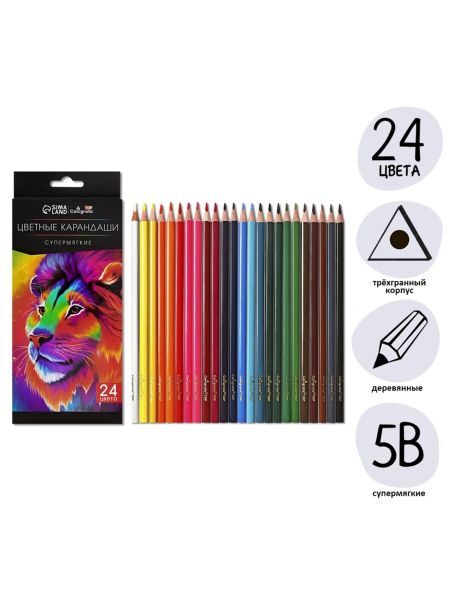 Карандаши цветные 24 цвета top calligrata, супермягкие, в картонной коробке, диаметр грифеля 3 мм, 5b