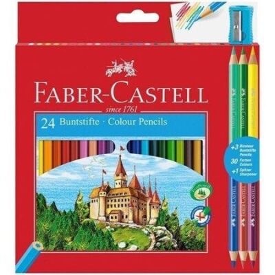 Набор цветных карандашей Faber-Castell «Замок» шестигранной формы из качественной древесины — гарантия легкого затачивания при помощи стандартных точилок. Толщина грифеля 3 мм. Специальная технология вклеивания (SV) предотвращает поломку грифеля. Покрыты лаком на водной основе — бережным по отношению к окружающей среде и здоровью детей. Отстирываются с большинства обычных тканей.