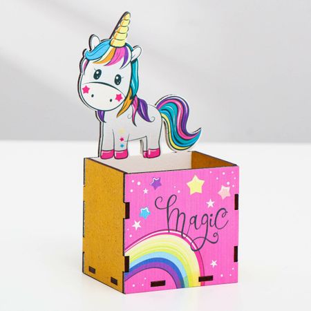 Главная » Товары для детей Карандашница Просмотров 7 Карандашница "Magic" с единорогом, 8х6,5х17 см, МДФ. No brand