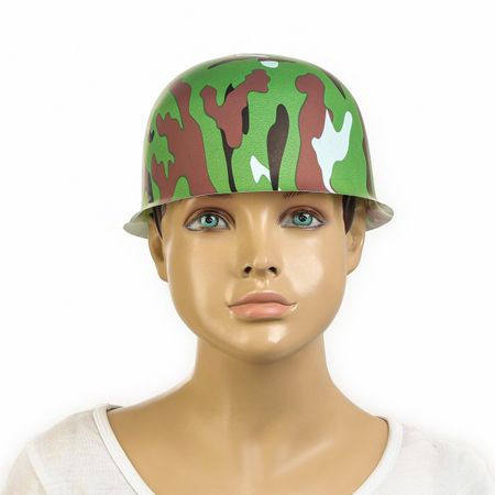 Карнавальная пластиковая каска «Камуфляж». Карнавальная пластиковая каска «Камуфляж» — отличное дополнение к образу военного. Головной убор цвета хаки станет органичным завершением вашего солдатского костюма. Такое обмундирование идеально подойдет для театрализованных постановок, тематических вечеринок, сценических выступлений и патриотических фотосессий.