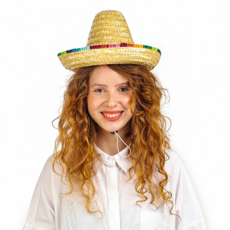 Карнавальная шляпа «Сомбреро». Аррива! Добро пожаловать в мир текилы, маракасов и кактусов! Карнавальная шляпа «Сомбреро» погрузит вас в мексиканскую атмосферу улыбчивых людей и острых соусов! Почему бы не устроить костюмированную вечеринку в латиноамериканском стиле? Или конкурс шляп? Такой головной убор отлично подойдет и для тематического представления или спектакля! Эта эффектная деталь национального костюма передаст весь колорит жаркой страны. С такой шляпой вы почувствуете себя настоящим мачо! Можно фантазировать как угодно. <b> Материал: солома, текстиль.</b>