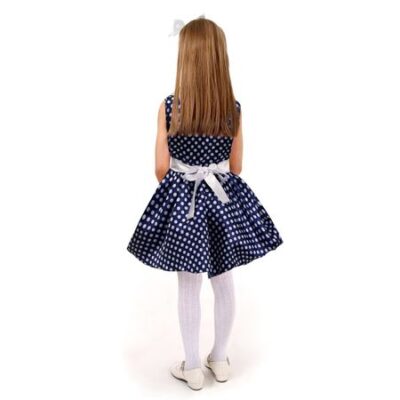 Карнавальный костюм «Стиляги 5», платье синее в белый горох, повязка, р. 36, рост 140 см. Карнавальный костюм «Стиляги» — стиль и элегантность для каждой маленькой модницы. Яркие цвета и пышность платья создадут образ танцующей красавицы. Легкий материал приятно ложится на тело, обеспечивая комфорт и свободу движений. <b> Особенности</b> <ul> <li> Яркий рисунок платья привлекает внимание</li> <li> Материал платья мягкий и приятный на ощупь</li> </ul> Пышное яркое платье — символ стиляг и бальных танцев. Она позволяет каждой маленькой моднице почувствовать себя уверенной и особенной. Карнавальный костюм идеально подойдет для карнавала, утренника или любого тематического праздника, предоставив вашей малышке шанс почувствовать себя воплощением моды и стиля. <b> В наборе</b> <ul> <li> Пышное платье.</li> <li> Повязка на голову.</li> </ul>