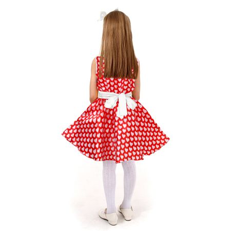 Карнавальный костюм «Стиляги» платье красное с белыми сердцами, повязка р-р 32 рост 122-128 см. Карнавальный костюм «Стиляги» — стиль и элегантность для каждой маленькой модницы. Яркие цвета и пышность платья создадут образ танцующей красавицы. Легкий материал приятно ложится на тело, обеспечивая комфорт и свободу движений. <b> Особенности</b> <ul> <li> Яркий рисунок платья привлекает внимание</li> <li> Материал платья мягкий и приятный на ощупь</li> </ul> Пышное яркое платье — символ стиляг и бальных танцев. Она позволяет каждой маленькой моднице почувствовать себя уверенной и особенной. Карнавальный костюм идеально подойдет для карнавала, утренника или любого тематического праздника, предоставив вашей малышке шанс почувствовать себя воплощением моды и стиля. <b> В наборе</b> <ul> <li> Пышное платье.</li> <li> Повязка на голову.</li> </ul>
