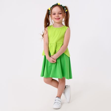 Карнавальный костюм «Сказочная фея», рост 110–122 см, платье, венок. Карнавальный набор «Сказочная фея» — это воплощение волшебного образа, который очарует каждого на любом мероприятии. Платье из набора выполнено в ярких зеленых оттенках, которые делают его по-настоящему сказочным. В комплект также входит венок с желтыми цветами, который дополняет костюм и придает ему завершенность. <b> Особенности</b> <ul> <li> Платье изготовлено из эластичного материала, благодаря чему оно легко надевается и комфортно носится.</li> <li> Яркие зеленые цвета с элементами в виде листочков создают атмосферу природы и волшебства, идеально подходящую для образа феи.</li> <li> Венок с желтыми цветами добавляет нежности и завершает образ, позволяя ребенку почувствовать себя настоящей сказочной героиней.</li> </ul> Карнавальный костюм отлично подойдет для детских праздников, утренников, тематических вечеринок и костюмированных представлений.