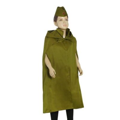 Карнавальный костюм детский «Солдат», плащ-палатка, пилотка, 4-7 лет, рост 110-128 см. Карнавальный костюм детский «Солдат», плащ-палатка, пилотка, 4-7 лет, рост 110-128 см — отличный наряд для создания образа военнослужащего! В таком обмундировании ваш малыш сыграет бойца на театральной сцене или примет участие в патриотических представлениях и торжественных шествиях по случаю Дня Победы, 23 Февраля — любых военных праздников. Просторная плащ-палатка с капюшоном не будет сковывать движений. Руки можно спрятать внутрь либо продеть через специальные отверстия и оставить снаружи. Форменная пилотка прекрасно дополняет этот набор.