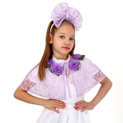 Карнавальный набор «Принцесса»: пелерина гипюр, ободок, рост 98-128 см. Карнавальный набор «Принцесса» превратит вашу маленькую леди в настоящую королеву сказок. Сиреневый цвет набора придает ему особую яркость и привлекательность. Этот набор идеально подойдет для праздничных мероприятий, утренников и фотосессий. <b> Что входит в набор:</b> <ul> <li> <b> Пелерина из нежного гипюра</b> с изящным узором. Яркие объемные розы добавляют образу нежности и романтичности. Пелерина завязывается на шее и подходит для девочек ростом от 98 до 128 см.</li> <li> <b> Ободок</b> украшает объемный сиреневый бант, создавая нарядный и праздничный образ.</li> </ul> Карнавальный набор «Принцесса» станет прекрасным дополнением к любому наряду и позволит вашей девочке почувствовать себя настоящей звездой любого праздника.