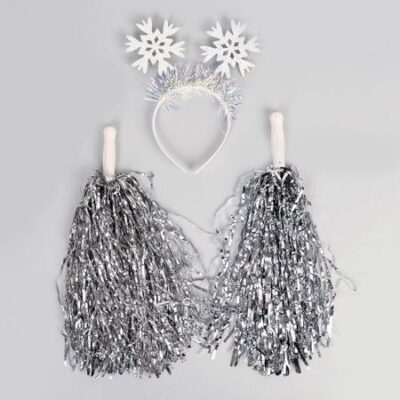 Карнавальный набор «Снежинка 6» (ободок+ помпоны). Новогодний карнавальный набор включает в себя ободок и два помпона, идеально подходящие для создания образа на праздничных мероприятиях. Ободок выполнен в белом цвете и украшен эффектными элементами, придающими аксессуару зимний и сказочный вид. Помпоны выполнены в том же стиле и дополняют общий образ. Набор подойдет для детей и взрослых. Этот набор станет отличным выбором для новогодней вечеринки, костюмированного бала или фотосессии. Используйте его как часть образа, создавая настроение праздника и зимней сказки. Легкость и универсальность позволяют использовать аксессуары и в повседневной жизни, добавляя немного новогоднего волшебства в обыденные дни.