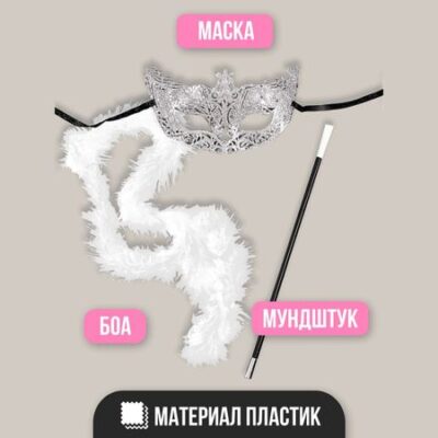 Карнавальный набор «A little party never killed nobody»: маска, мундштук, боа. Карнавалы и костюмированные вечеринки — это всегда интересные перевоплощения, которые делают веселые встречи незабываемыми. Вам не потребуется искать и покупать целый наряд, ведь в наборе есть все необходимые детали для создания узнаваемого и игривого образа. Удивите необычной ролью друзей и гостей торжества, а также свою вторую половинку!