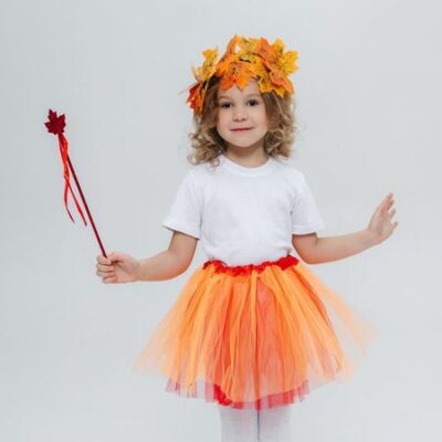 Карнавальный набор «Осенняя муза»: юбка, венок, палочка. Карнавальный набор «Осенняя муза» — это яркий и запоминающийся костюм для девочек. Костюм поможет выделиться на любом празднике, утреннике или спектакле. Он придаст уверенности в себе и позволит почувствовать себя настоящей осенней феей. <b> Особенности</b> <ul> <li> Юбка длиной 30 см легкая и удобная, идеально подходит для активных игр и танцев.</li> <li> Венок и палочка добавляют образу завершенности, создавая волшебную атмосферу осени.</li> <li> Изготовлен из безопасных материалов, подходящих для детей от 3 лет.</li> <li> Элементы костюма созданы из прочного и нетоксичного пластика и текстиля — это обеспечивает комфорт и долговечность.</li> </ul>