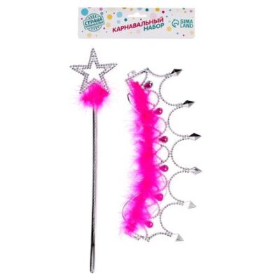 Карнавальный набор «Маленькой принцессы», 2 предмета: жезл, корона на резинке. Карнавальный набор «Маленькой принцессы» — волшебный набор, который превратит любую девочку в настоящую королеву! <b> Особенности</b> <ul> <li> Изящная серебристая диадема, украшенная сверкающими стразами и нежным розовым мехом</li> <li> Ободок надежно фиксируется резинкой, обеспечивая комфортную носку</li> <li> Серебристая палочка с яркой розовой звездой на конце, украшенной стразами и мехом. Она добавит волшебства и превратит любую игру в сказочное приключение</li> <li> Сочетание серебристого и розового цветов создает нежный и праздничный образ</li> <li> Подходит для девочек разных возрастов</li> </ul> Этот набор поможет создать неповторимый образ для тематических вечеринок, карнавалов и просто для игры в принцессу. Идеальный подарок для маленькой принцессы на день рождения, Новый год или любой другой праздник!