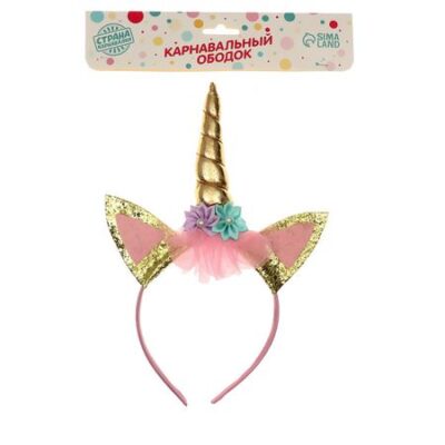 Карнавальный ободок «Единорог», золотой. Карнавальный ободок внесет праздничную нотку в ваш образ. Эффектный аксессуар за считаные секунды преобразит прическу и добавит наряду торжественности. Раздайте такие атрибуты всем гостям, и удивительная позитивная атмосфера сразу воцарится за вашим столом. Ободок станет отличным дополнением к костюму на любых вечеринках или фотосессиях. А когда праздники закончатся, будет напоминать о весело проведенном времени!
