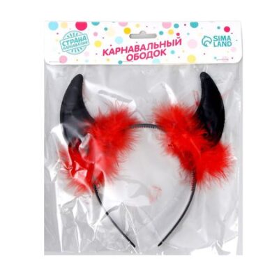 Карнавальный ободок «Рожки». Карнавальный ободок «Рожки» — незаменимый атрибут для Хэллоуина и тематических праздников! Он позволит с головой погрузиться в выбранную роль и отлично завершит образ с чертовщинкой. Эффектный аксессуар преобразит вашу прическу и создаст неповторимый стиль на вечеринке с переодеванием. Добавьте мистики и таинственности своему наряду и будьте заметны на любом торжестве!