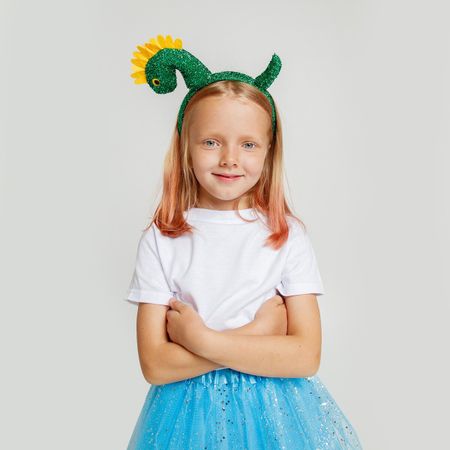 Карнавальный ободок «Дракон», зеленый. Яркий и забавный карнавальный ободок с изображением дракончика станет отличным дополнением к праздничному образу. Мягкий и приятный на ощупь материал не доставит дискомфорта при ношении, а надежная конструкция обеспечит плотное, но при этом комфортное прилегание к голове. Блестящие элементы на ободке привлекают внимание и создают праздничное настроение. <b> Особенности</b> <ul> <li> Мягкий материал не натирает кожу и не вызывает дискомфорта.</li> <li> Ободок плотно сидит на голове, не сползает и не давит.</li> <li> Блестящие элементы и красочное изображение дракончика привлекают внимание.</li> <li> Подходит для детей и взрослых.</li> </ul> Карнавальный ободок «Дракончик» прекрасно подойдет для тематических вечеринок, детских утренников, новогодних праздников и других мероприятий. Он станет отличным аксессуаром для создания яркого и запоминающегося образа.