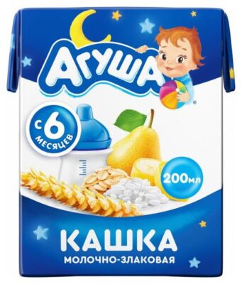 Детям с 6 месяцев Каша готовая молочная Агуша Злаковая с грушей и бананом с 6 мес. 200 мл. Употребление готовой жидкой каши благоприятно сказывается на работе кишечника и нормализует стул. Каша состоит из трех злаков: пшеницы, риса и овса. Пшеница богата витаминами А, В, С D, Е и ненасыщенными жирными кислотами растительным белком и крахмалом. Пшеница, благодаря содержанию в ней клетчатки, стимулирует работу ЖКТ. Рисовая каша содержит мало клетчатки, поэтому полезна детям со склонностью к неустойчивому стулу. Отвары риса обладают обволакивающим эффектом, что является защитным механизмом при кишечных расстройствах. Овсяная молочная каша обволакивает слизистую оболочку желудка и нормализует двигательную активность кишечника. Овсянка богата калием, фосфором, магнием, железом, фтором, цинком, йодом, витаминами Е и группы В. Витамины группы В благотворно влияют на нервную систему, успокаивают и способствуют хорошему сну. Пребиотики способствуют повышению иммунитета и улучшению состояния здоровья ребенка. Содержит пребиотики.Содержит злаки, которые обладают эффектом насыщения и могут способствовать спокойному сну малыша.Готово к употреблению.Без консервантов, красителей, ГМО. Способ приготовления: При кормлении детей до года — назначенную врачом массу продукта из упаковки перелить в чистую посуду и подогреть на водяной бане до температуры от +36 до +38C.