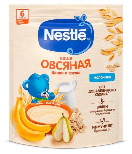 Молочная овсяная каша с грушей и бананом для детей старше 6 месяцев согласно законодательству РФ.