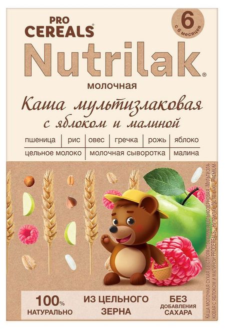Каша Procereals молочная мультизлаковая с яблоком и малиной Цельнозерновая. Без добавления сахара. Каша из нескольких злаков поможет расширить рацион малыша старше 6 месяцев. Сочетание нескольких круп, сухого цельного молока и хлопьев яблока и малины в молочной цельнозерновой каше Мультизлаковая с яблоком и малиной PROCEREALS, без сахара — хорошая возможность познакомить малыша с новыми вкусами и наполнить растущий организм энергией для новых открытий.