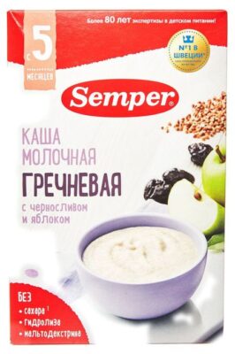Гречневая каша с черносливом и яблоком обладает нежной кремовой консистенцией и мягким вкусом натурального молока и фруктов. Эта каша прекрасно подойдет для малышей с 5 месяцев в качестве основного блюда для разнообразия и расширения рациона. Гречка относится к группе низкоаллергенных продуктов и не содержит глютена. От природы она богата минералами (цинком, железом, магнием, кальцием) и витаминами, которые дополняют друг друга. Каши Semper не содержат добавленного сахара и обладают сладостью натурального вкуса молока, злаков и фруктов, что, в свою очередь, помогает с самого раннего детства формировать привычку к правильному питанию.