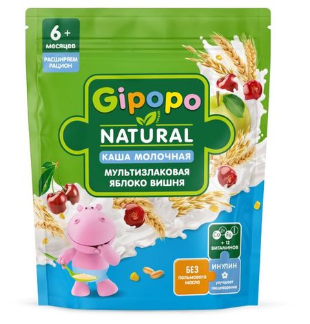 Каша сухая молочная детская Gipopo мультизлаковая яблоко вишня с 6 мес., 170 г