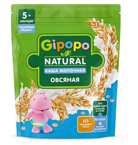 Главная » Товары для детей Каша сухая молочная детская Gipopo Овсяная с 5 мес., 180 г Просмотров 5 Продукт детского питания для детей раннего возраста, продукт прикорма. Каша овсяная молочная сухая быстрорастворимая, обогащенная пребиотиками. Gipopo