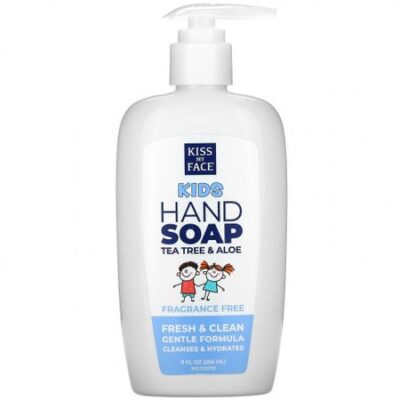 Чайное дерево и алоэСвежесть и чистотаМягкая формулаОчищает и увлажняетНаш рецепт — без парабенов и фталатовВеганский продукт — не содержит ингредиентов животного происхожденияЭтичный продуктСертификат Leaping BunnyKiss My Face заботится о самых лучших ингредиентах для чистой и здоровой кожи. Детское мыло для рук нежно и эффективно очищает и увлажняет благодаря эфирным маслам и, а также таким ингредиентам, как чайное дерево, оливковое масло, алоэ и ромашка. Это мыло без отдушки — часть удобного для детей ухода, оптимально использовать вместе с детским лосьоном для рук и тела.Kiss My Face… because we care.™ Полезные продукты для личной гигиены с 1983 года.