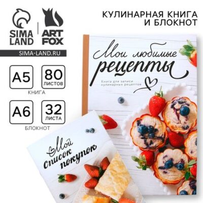 Книга для записи рецептов А5, 80 л и блокнот список покупок А6, 32л «Мои рецепты». Кулинарный набор отличный выбор для тех, кто любит готовить и хочет систематизировать свои кулинарные находки. Этот дуэт поможет держать рецепты под рукой и всегда иметь список необходимых продуктов. <ol> <li> Книга для записи рецептов (80 листов)</li> </ol> <ul> <li> Удобный формат А5 для подробного описания блюд</li> <li> Твердый переплет для длительного использования</li> <li> Плотная бумага 80г/м</li> <li> Подходит для записи как простых, так и сложных рецептов</li> </ul> <ol> <li> Блокнот (32 листа)</li> </ol> <ul> <li> Компактный размер для удобной переноски</li> <li> Можно брать с собой в магазин</li> <li> Удобный формат А6 для составления ежедневных списков</li> </ul> Записывайте свои кулинарные эксперименты и секреты приготовления блюд, создавая неповторимый сборник семейных рецептов. Пусть ваши кулинарные традиции живут вечно в этих страницах, становясь частью истории вашей семьи. Создайте свою собственную кулинарную энциклопедию, которая будет не только руководством по приготовлению пищи, но и драгоценным наследием для будущих поколений.