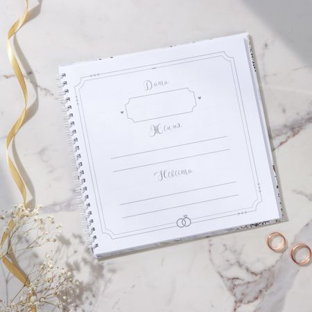 Книга пожеланий на свадьбу, на пружине, 21.5×21 см «Мраморная сказка: Ты и Я». Гостевая книга — прекрасный атрибут свадебного вечера. Записывать пожелания в эту книгу понравится всем гостям. А вам понравится то, что через много много лет вы сможете окунуться еще раз в атмосферу вашего праздника. Идеально для свадьбы в стиле бохо, рустик, минимализм, прованс. Книга сделана из преплетного картона 1,25 мм с глянцевой ламинацией. В книге 40 односторонних листа размером 21х21 см плотностью 80 гр., первый лист для молодоженов с указанием даты торжества и имен, последующие 39 листов для искренних пожеланий счастливой семейной жизни жениху и невесте.
