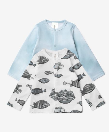 Трикотажная кофточка с длинным рукавом — одна из самых нужных вещей для новорождённого мальчика! Она создаст комфортный второй слой, если в помещении или на улице прохладно. Кофточки выполнены из мерсеризированного трикотажа, имеющего гладкую, мягкую, шелковистую поверхность. Комплект из 2-х штук — ортимальный набор для разнообразия возможных решений. Кофточки застёгиваются на кнопки. В оформлении изделий использованы фирменные жаккардовые нашивки.
