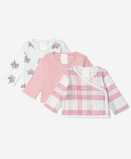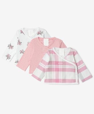 Трикотажная кофточка с длинным рукавом — одна из самых нужных вещей для новорождённого! Комплект из 3-х кофточек с оригинальными принтами в бело-розовых оттенках внесёт разнообразие в повседневные образы девочки. Хлопковый пластичный трикотаж мягко касается кожи ребёнка, обеспечивая уют и комфорт. Кофточки застёгиваются на кнопки. В оформлении изделий использована фирменная жаккардовая нашивка.