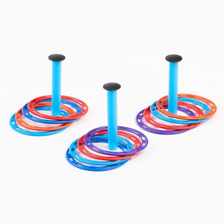 Кольцеброс детский, игра для дома и улицы, набор 3 стойки, 12 колец. <b> Кольцеброс</b> отлично развивает меткость и ловкость, координацию движений и сноровку, развивает моторику рук. Ребенку необходимо не только определить траекторию броска, но и решить, с какой силой его нужно совершить, чтобы кольцо попало в цель. Игра отлично подходит для детских праздников и развлечений на даче! <b> Правила игры:</b> <ul> <li> Установите стойки.</li> <li> Договоритесь, с какого расстояния будете бросать кольца, какие и по сколько штук.</li> <li> Сначала покажите ребенку, как это делается, начав с небольшого расстояния, а затем постепенно увеличивайте дальность броска.</li> </ul> В наборе: <ul> <li> 3 стойки и 12 разноцветных колец</li> </ul> Увлекательная игра станет отличным подарком малышам и более взрослым детям на день рождения, новый год или другой праздник. Играть можно в помещении или на улице, игру легко взять с собой на прогулку, пляж, на дачу, в загородный дом, на природу или пикник. Яркий тренажер ловкости, меткости, координации движений, концентрации внимания можно установить в детском саду, школе, в детском лагере, на уличной площадке.