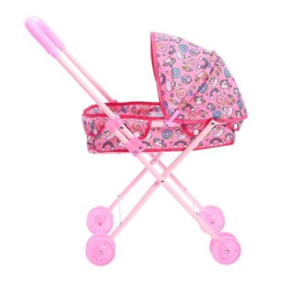 Коляска для кукол «Сладкая поняшка» универсальная, металлический каркас. Маленькие леди с самого раннего детства проявляют интерес к сюжетно-ролевым играм, в процессе которых они интуитивно повторяют действия своих родителей. Во время игры происходит развитие материнских навыков: девочка заботится о кукле, кормит ее с ложечки, пеленает и гуляет с ней. Именно по этим причинам коляска для куклы не просто полезна, но и необходима для того, чтобы разнообразить досуг ребенка. Изделие подходит для любой погоды. Благодаря крепким пластиковым колесам и металлическому каркасу коляска очень устойчива при езде. Вы можете положить куколку в люльку и поднять козырек, чтобы ей было тепло. Высота от пола до ручки (не регулируется) — 55 см; размер люльки — 33 × 17 × 8 см; размер коляски — 49 × 23,5 × 55 см. <b> Играйте и развивайтесь вместе с нами!</b>