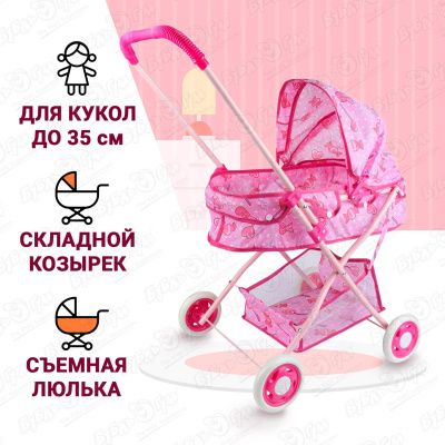 Коляска Lanson Toys Doll Stroller Sweet candy прогулочная с капюшоном и багажником розовая