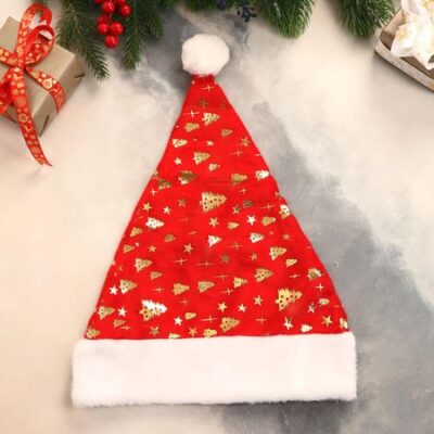 Колпак новогодний «Ёлочки и звезды» 29×40 см, красный. Праздник в каждом узоре. Колпак «Ёлочки и звезды» — это новогодний головной убор красного цвета, выполненный из прочного полиэстера. Размер 29×40 см обеспечивает удобную посадку как детям, так и взрослым. Декоративные мотивы елок и звезд подчеркивают зимнюю атмосферу и идеально вписываются в образ для домашнего торжества или тематического мероприятия. Это не просто колпак, а стильный акцент, который создает ощущение предстоящего чуда. <ul> <li> <strong> Красный — цвет зимнего праздника:</strong> Цвет символизирует тепло, радость и классическое новогоднее настроение, подходя под любой праздничный образ.</li> <li> <strong> Узоры елочек и звезд — отсылка к зимней сказке:</strong> Принт усиливает ощущение предновогодней подготовки и делает аксессуар стилистически выдержанным и узнаваемым.</li> <li> <strong> Полиэстер — практичный и долговечный материал:</strong> Ткань сохраняет яркость рисунка, легко чистится и остается мягкой при носке, даже после нескольких сезонов.</li> <li> <strong> Универсальный размер — комфорт для всей семьи:</strong> Колпак одинаково хорошо сидит и на ребенке, и на взрослом — идеален для семейных фото, утренников и вечеринок.</li> <li> <strong> Связь с образом Деда Мороза — намек на традиции:</strong> Это не просто головной убор — он помогает создать целостный новогодний облик и погрузиться в атмосферу ожидания чуда.</li> </ul> <strong> Образ, наполненный светом:</strong> Этот колпак — не просто аксессуар, а часть новогодней истории, которую можно надеть. Он подходит тем, кто ценит традиции, но хочет видеть их в современном свете. «Ёлочки и звезды» — напоминание: праздник начинается там, где в него верят и добавляют ему блеска своими руками.