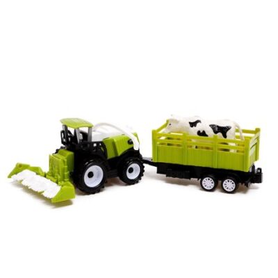Комбайн инерционный «Фермер», с прицепом. С инерционным транспортом ребенок представит себя профессиональным водителем спецтехники. Такие машины используются в самых разных сферах: от коммунального хозяйства и дорожного строительства до лесного и сельского хозяйства, поэтому ребенок придумает много сюжетов для игр! <b> Управление</b> Инерционный механизм позволяет задать транспорту скорость и дает возможность двигаться самостоятельно, по инерции. <b> Увлекательно и полезно</b> Веселая игра не только развлечет малыша, но и будет способствовать развитию воображения, пространственного и образного мышления, координации движений и эмоционального восприятия.
