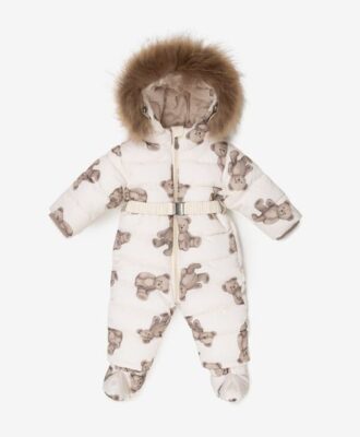 Мишки на этом молочном комбинезоне станут верными компаньонами малыша во время зимней прогулки! Комбинезон на искусственном пуху выполнен из гладкой влагостойкой плащовки с крупным принтом, на подкладке из меланжевого трикотажа. Он имеет классические функциональные детали, способные обеспечить ребёнку максимальное удобство на прогулке: карманы на молниях, капюшон с внутренними утяжками и отстёгивающимся мехом енота, снегозащитные манжеты на кнопках, исключающие попадание снега в обувь. Комбинезон застёгивается на молнию. В оформлении нижней части брюк используются светоотражающие элементы, способствующие безопасности ребёнка в тёмное время суток.