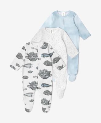 Свобода с первых дней жизни! Комплект из 3-х комбинезонов-слипов с закрытыми ножками — достойная замена распашонкам и пелёнкам, позволяющая малышу быть активным и с интересом познавать окружающий мир. Комбинезоны выполнены из мягкого хлопкового мерсеризированного трикотажа, обеспечивающего максимальный комфорт, уют и безопасную эксплуатацию. Оригинальные рисунки делают эмоциональный контакт с изделиями очень приятным. Слипы застёгиваются на кнопки. В оформлении моделей использованы фирменные жаккардовые нашивки.