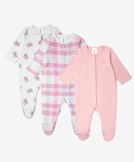 Свобода с первых дней жизни! Комплект из 3-х комбинезонов-слипов с закрытыми ножками и оригинальными принтами — достойная замена распашонкам и пелёнкам, позволяющая девочке быть активной и с интересом познавать окружающий мир. Комбинезоны выполнены из мягкого хлопкового трикотажа, который гарантирует максимальный комфорт, уют и безопасную эксплуатацию.