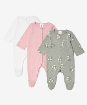 Свобода с первых дней жизни! Комплект из 3-х комбинезонов-слипов с закрытыми ножками и оригинальными принтами — достойная замена распашонкам и пелёнкам, позволяющая девочке быть активной и с интересом познавать окружающий мир. Комбинезоны выполнены из мягкого хлопкового трикотажа, который гарантирует максимальный комфорт, уют и безопасную эксплуатацию.